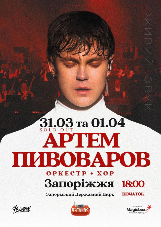 01 квітня в Запорізькому Державному Цирку Артем Пивоваров презентує шоу, в якому сучасна музика поєднається з величним звучанням оркестру НАОНІ та Хорової капели ім. Ревуцького. На глядачів чекають улюблені пісні в новому, масштабному звучанні, зокрема композиції з проєкту «Твої Вірші, Мої Ноти», що став основою цієї особливої програми. Зі сцени лунатимуть: «Барабан», «Думи», «Маніфест», «Там у тополі», «Дежавю», «Міраж» та інші треки, що вже стали близькими тисячам слухачів. Нестримна енергія артиста, народні інструменти, підсилені чоловічим хором, десятки музикантів, світлове шоу та неповторна атмосфера єднання — це буде вечір, який відчувається серцем.